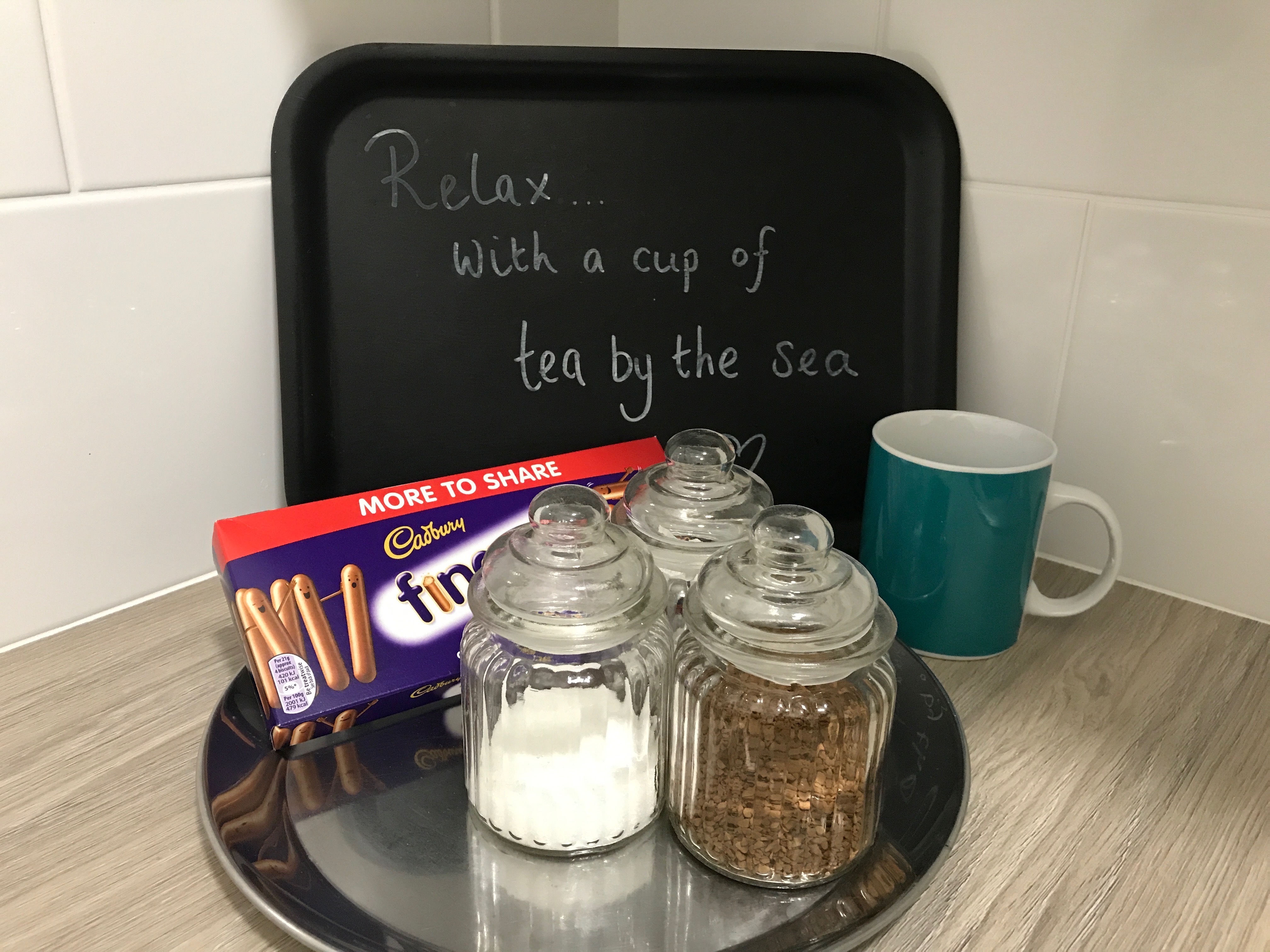 A: Yes. The Co-op and Tesco supermarkets are generally open until around 10 pm. (4pm Sunday). Each apartment will have a supply of tea, coffee, milk and biscuits to make that much needed cuppa on arrival. Some supermarkets will deliver to Salty Holidays.